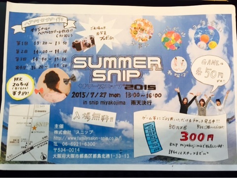 店舗ブログ| 美容室 Snip(スニップ) | 大阪、都島区、城東区、北区、中崎町、だいどう豊里、南巽、西区に10店舗を展開する美容室です。