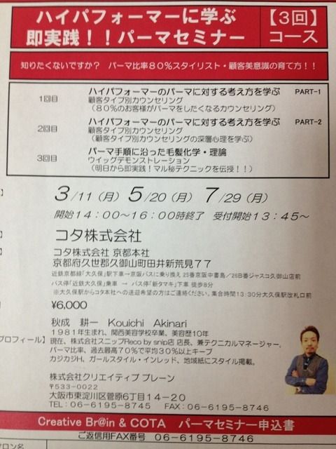 向けてのパーマセミナーの講師依頼を頂けるようになりました。