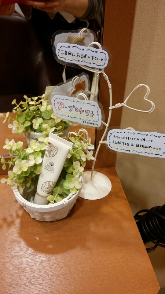 お店においてある日焼け止め兼お化粧下地をお試し頂いております♪