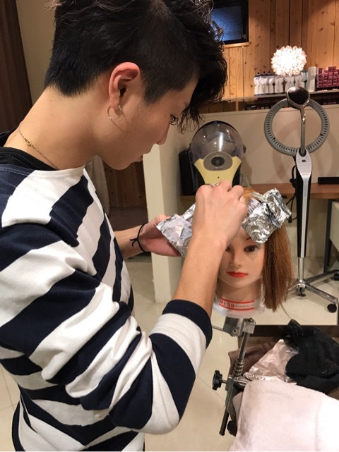 今日は明るい髪のモデルさんにカラーをさせて頂く勉強の日です。
