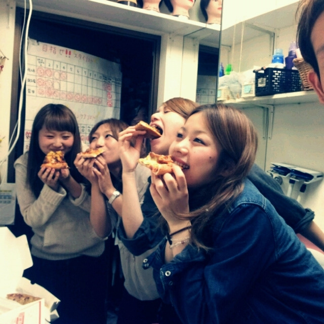 夜の9時にお店にピザが