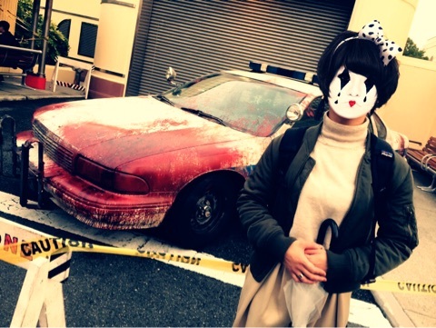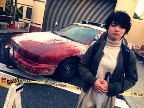 こんな血みどろの車がおいてあったりして、